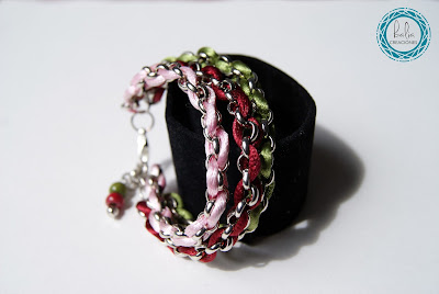 Ya estamos a mitad de semana!!! Hoy le toca el turno a una pulsera ralizada con cadena plateada y cola de ratón en tonos granate, verde y rosa, pero cualquier combinación es posible!!!