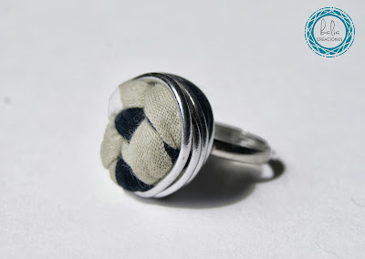 Y antes de que se acabe este jueves, aquí tenéis este anillo de trapillo blanco, verde y azul, enmarcado por alambre plateado.