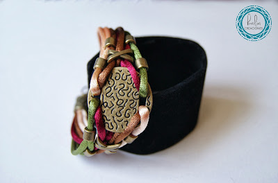 Hoy toca una pulsera realizada con cola de ratón en tonos otoñales, perfecta para esta época del año, además tiene una pieza central con un dibujo grabado y detalles en color oro envejecido.